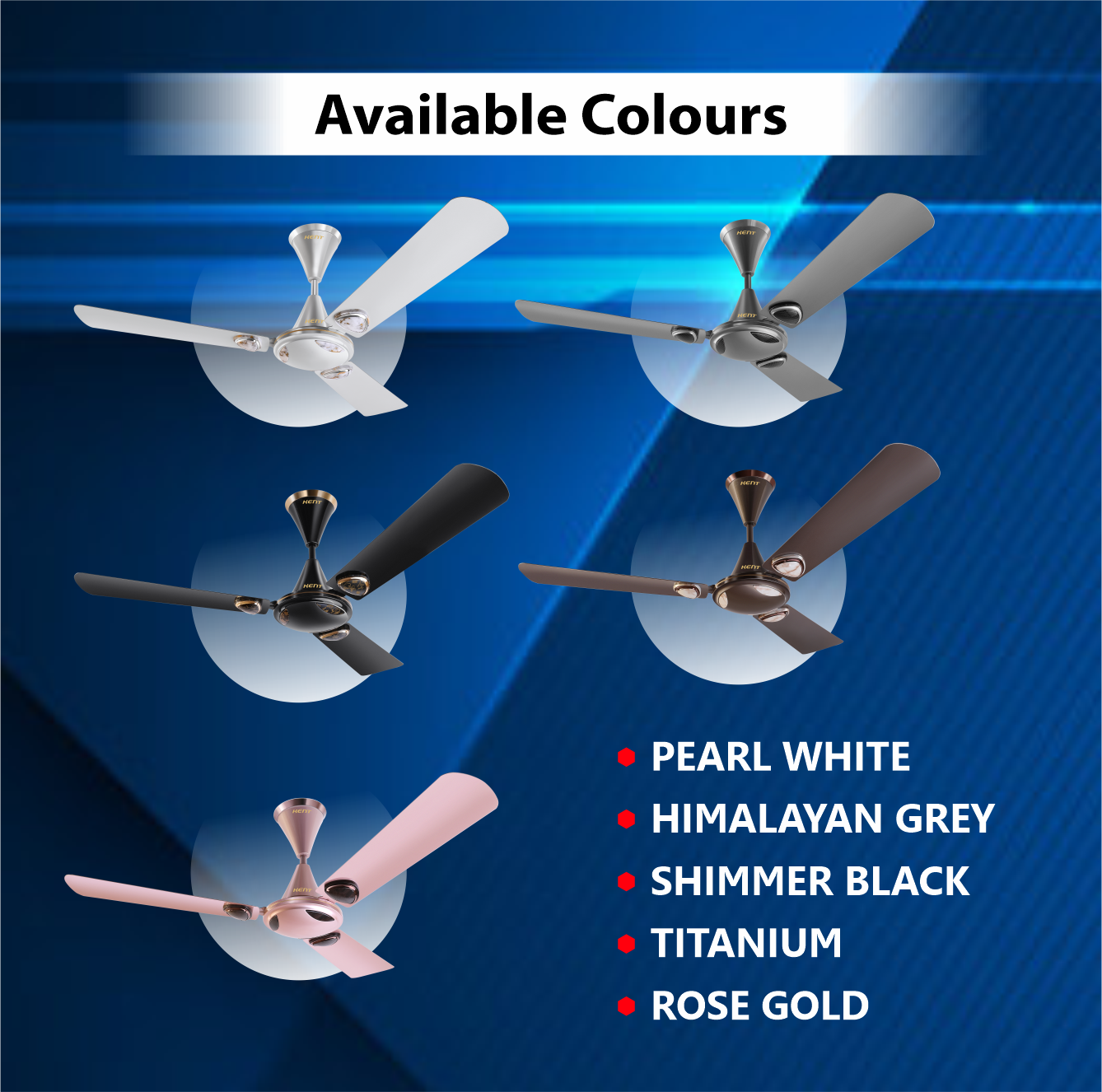 Kent Decorative Ceiling Fans are designed to elevate the aesthetics of your space, combining elegant looks with reliable performance.